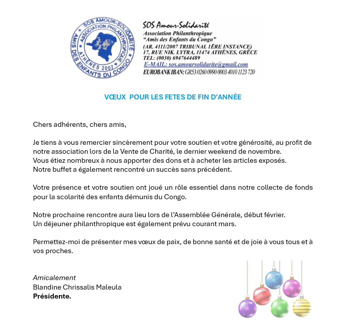 VŒUX POUR LES FÊTES DE FIN DE L’ANNÉE